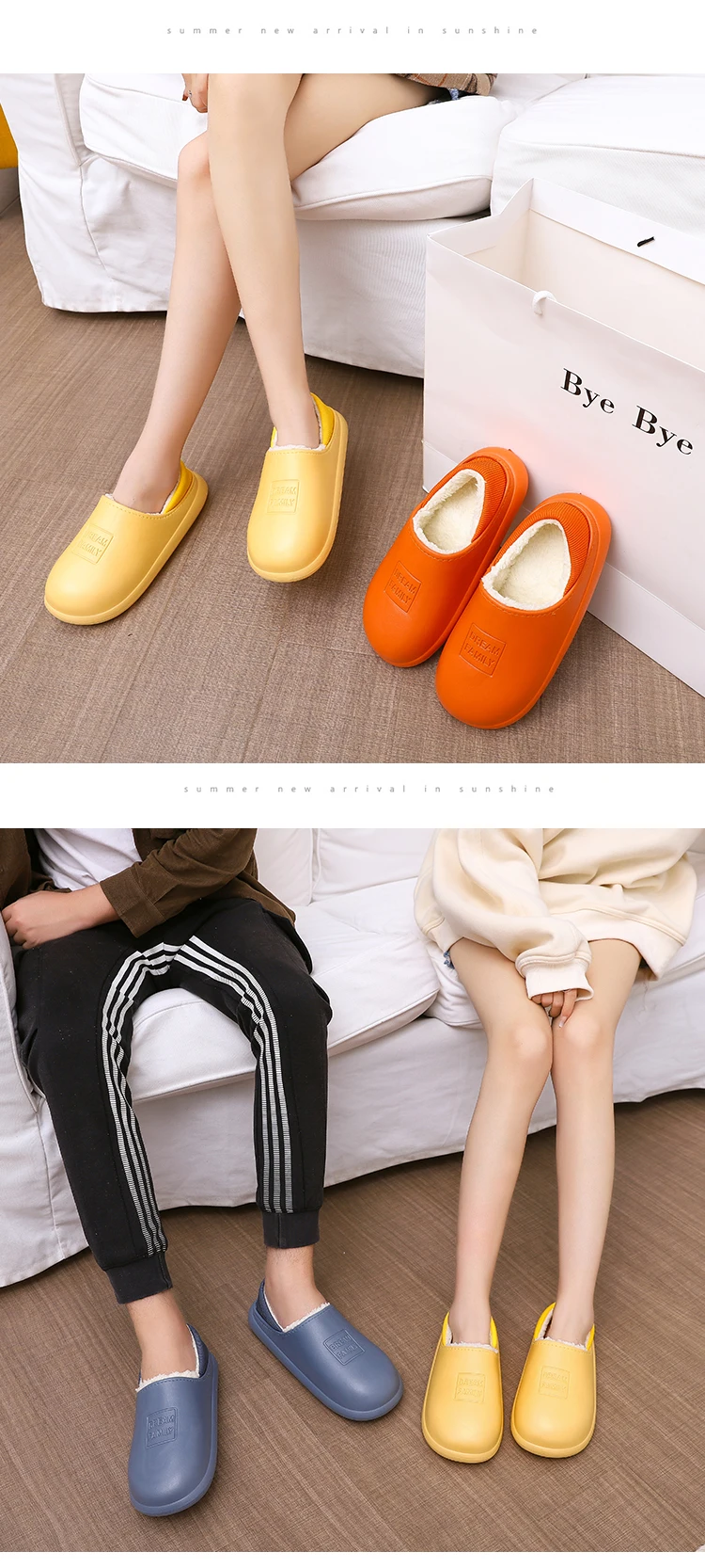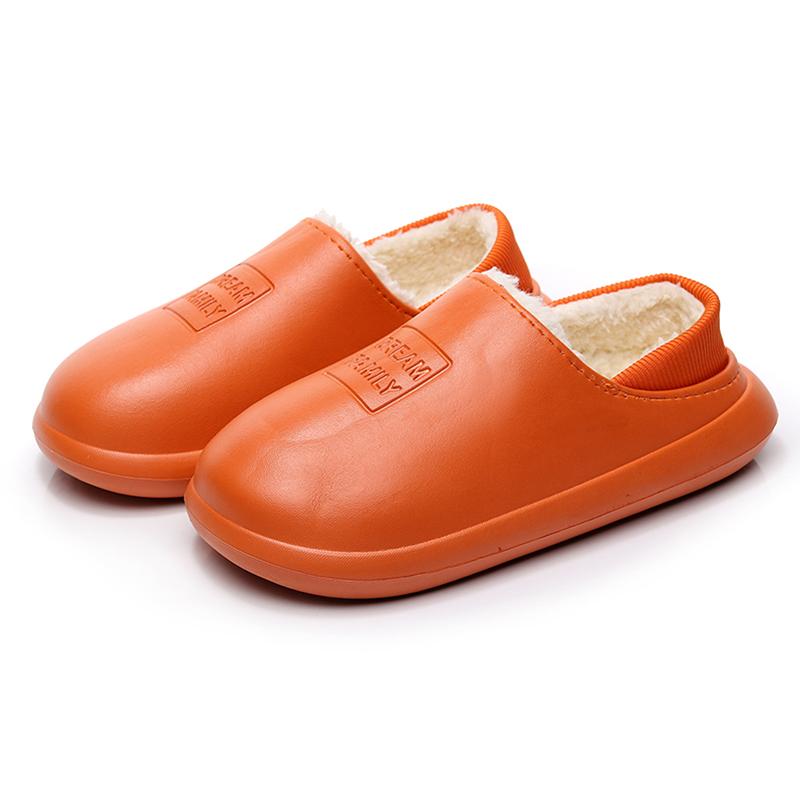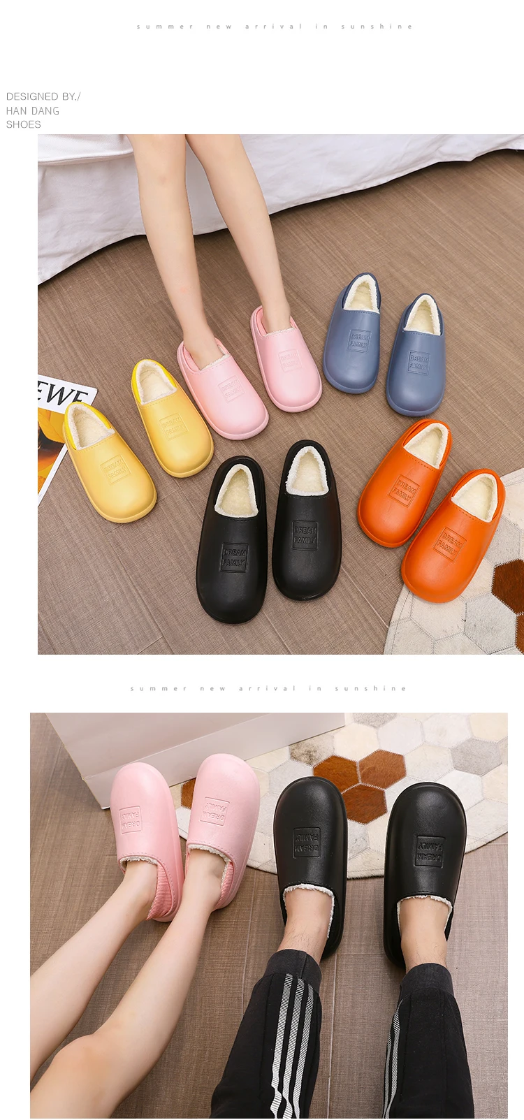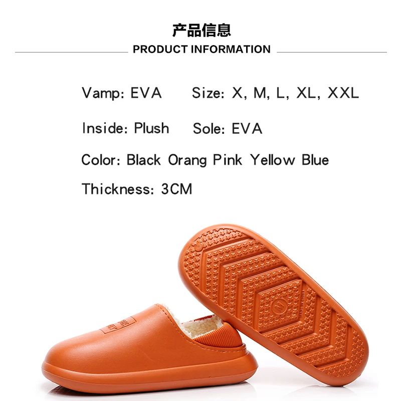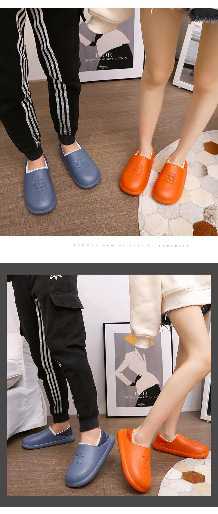 【2 pieces Free Shipping】Autumn Winter Indoor Water-Proof Cotton Slippers Plush Warm Household Shoes Non-Slip Couple Dual-Use Cotton Slippers Men Home Slides
