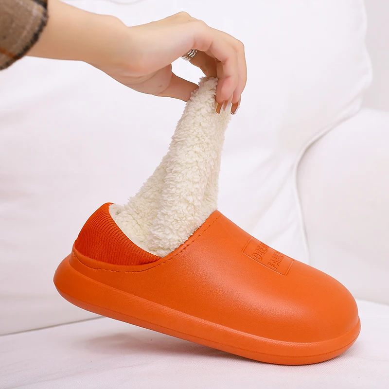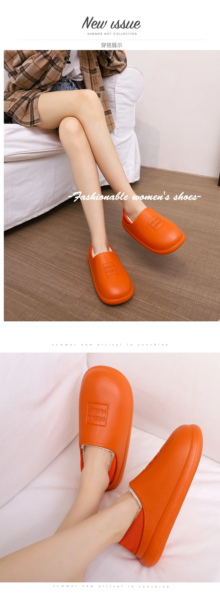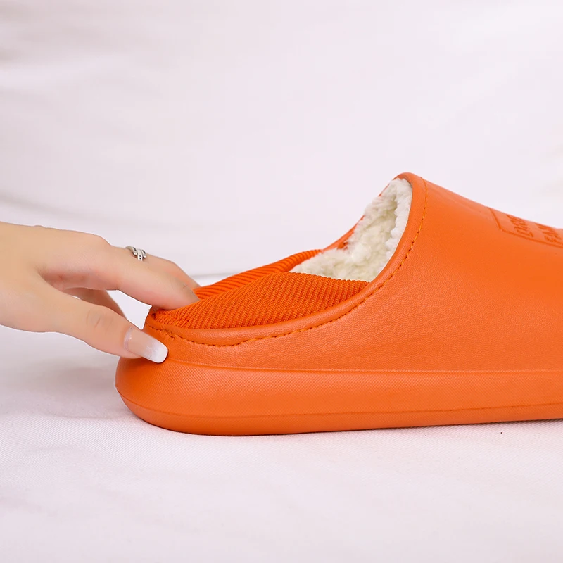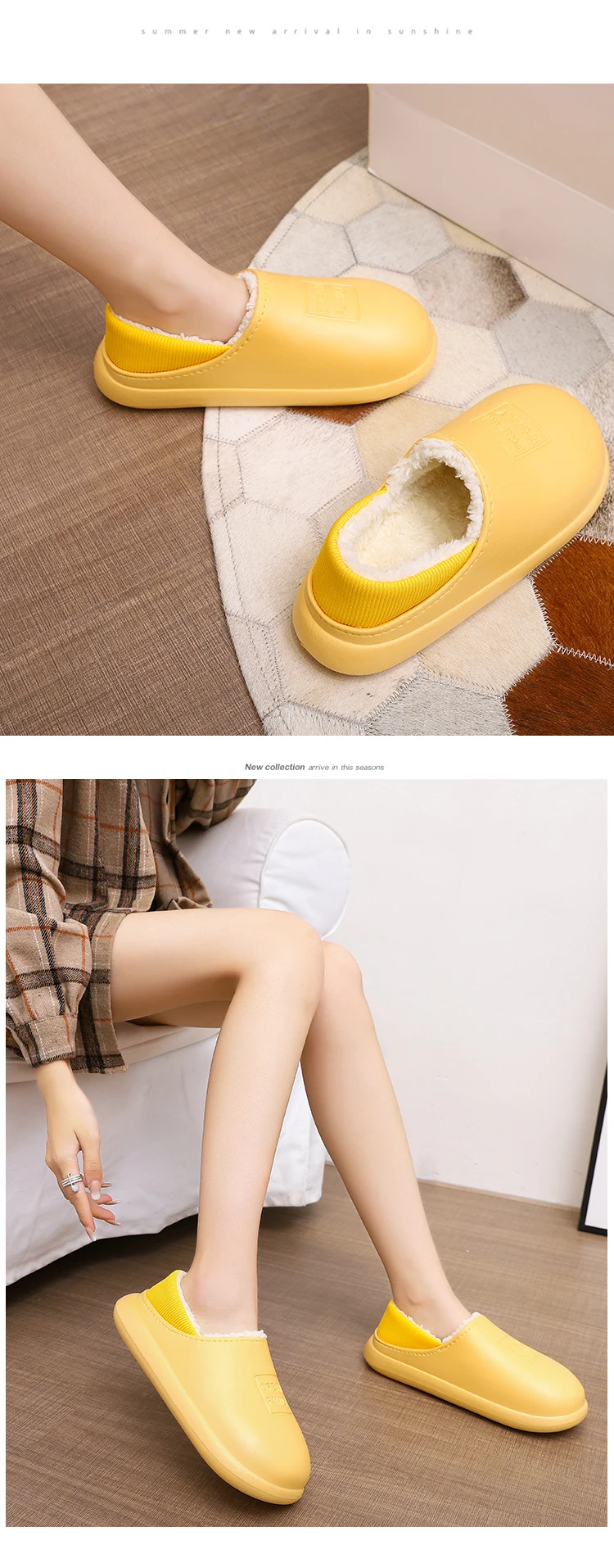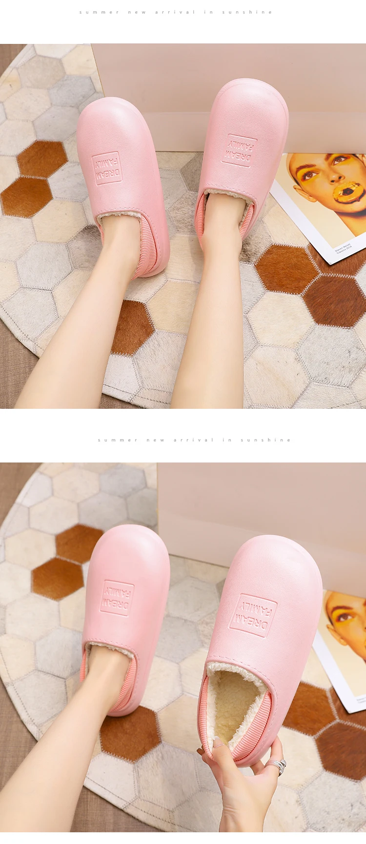 【2 pieces Free Shipping】Autumn Winter Indoor Water-Proof Cotton Slippers Plush Warm Household Shoes Non-Slip Couple Dual-Use Cotton Slippers Men Home Slides