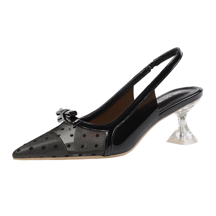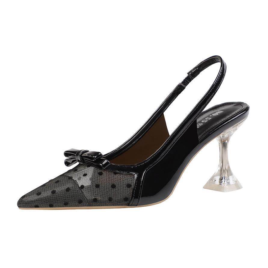 Pointed Polka-dot High Heels Bow Transparent Sandals