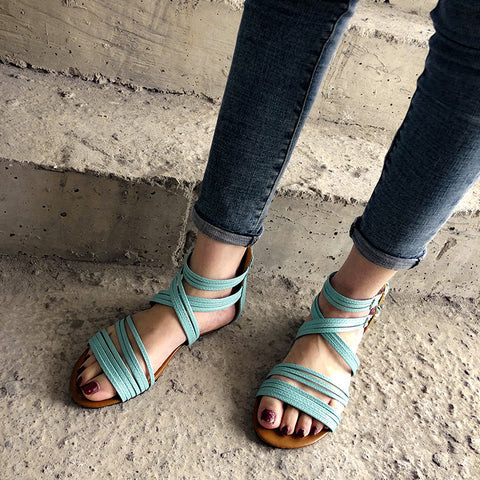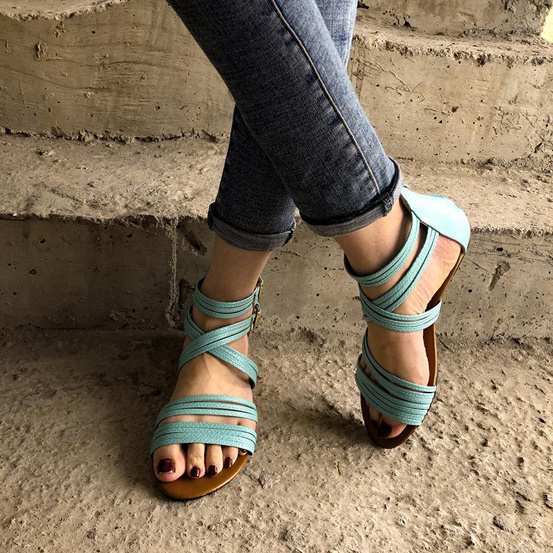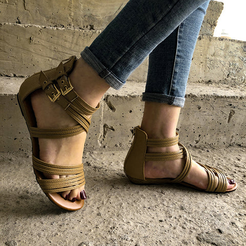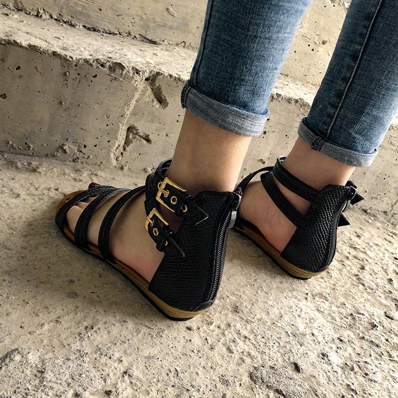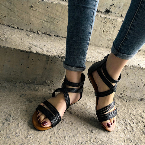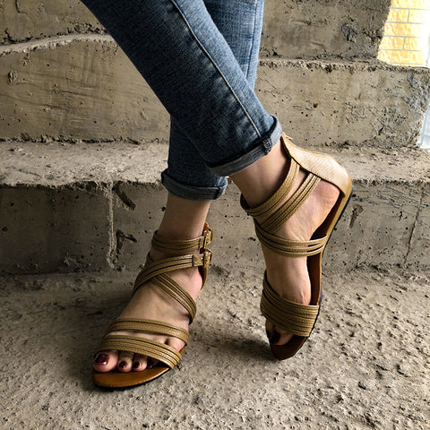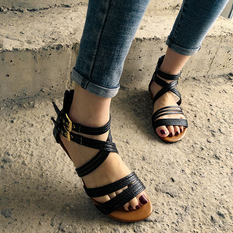 Roma Flat Wedge Heel Woven Buckle Back Zip Sandals