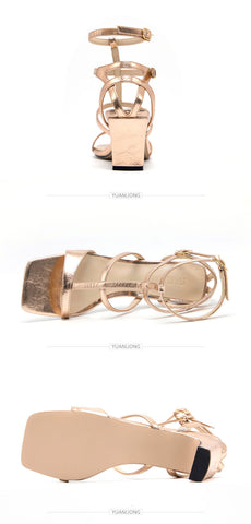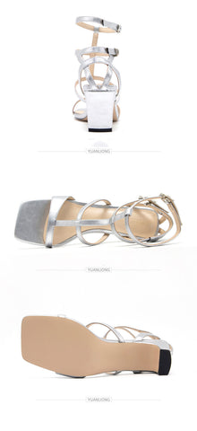 Roman Sexy Smooth Stiletto Strap Thick Heel Women's Sandals