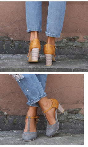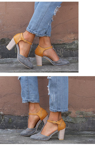 Rubber PU Thick High-heeled Shoes With One-line Buckle
