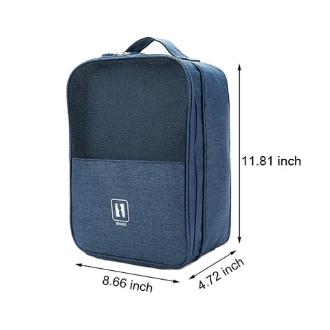 Fits for shoes below US13. It has 3 layers: the biggest room for leather shoes or high heels, two layers for sandals, flip flops, socks, or towels.