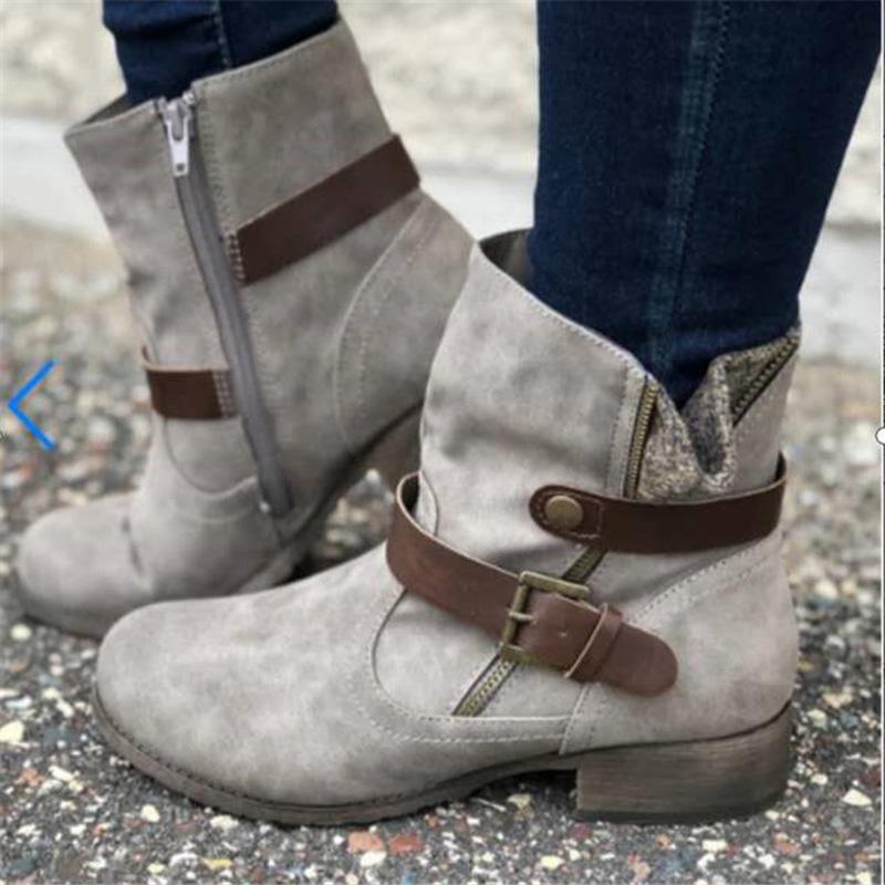 Solid Color Round Toe Low Heel Martin Ankle Boots