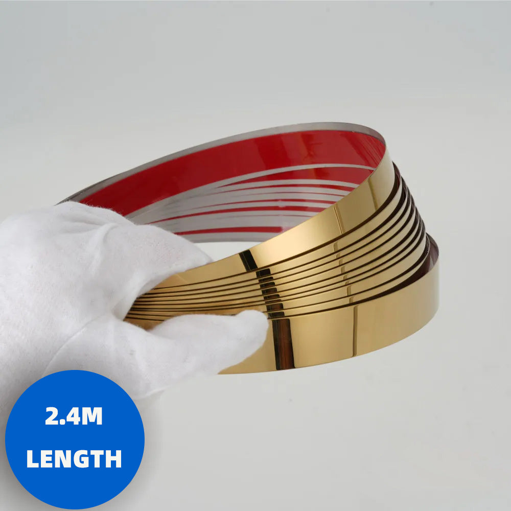Bright gold Wall Trim Molding Stainless Steel Wall Tape Peel and Stick Metal Trim Self Adhesive Wallpaper Strip Metalized Mirror-Like Finish for Wall Ceiling Mirror Frame Border Edge Trim wide 0.79in Length 94.49in