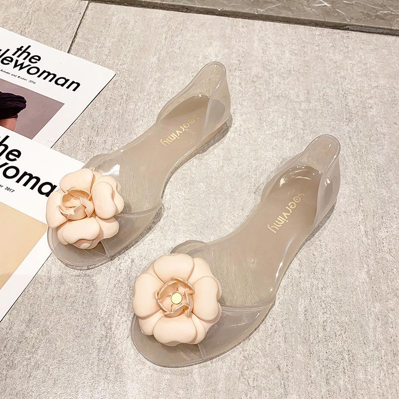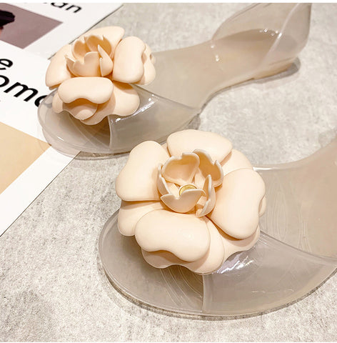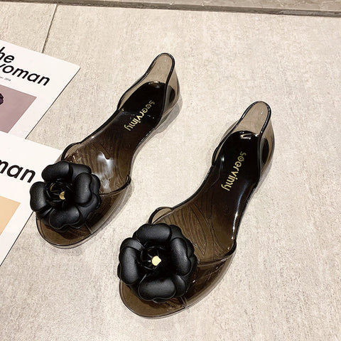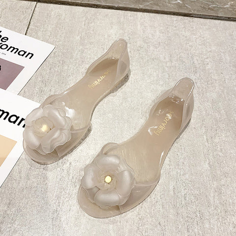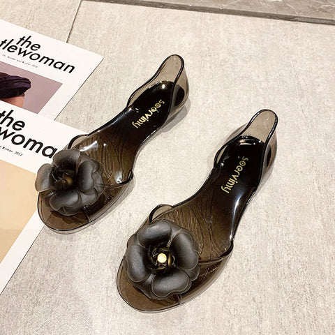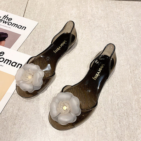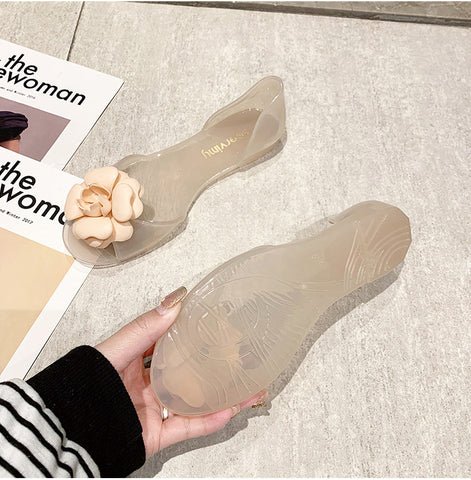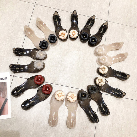 Summer Beach Shoes Fat Transparent Candy Color Flower Sandals