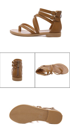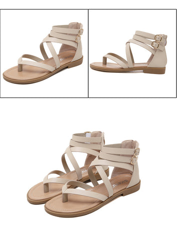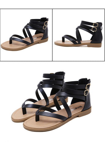 Summer Women's Fashion Zipper Solid Color Roman Sandals