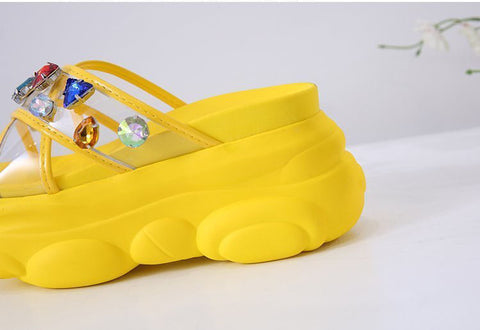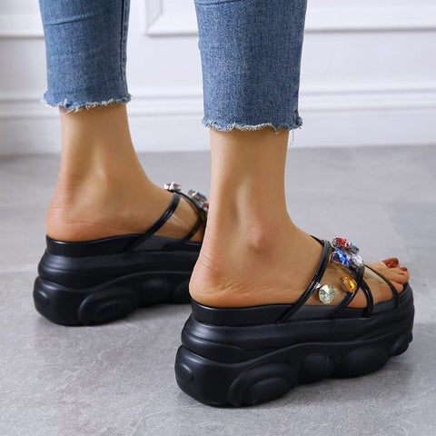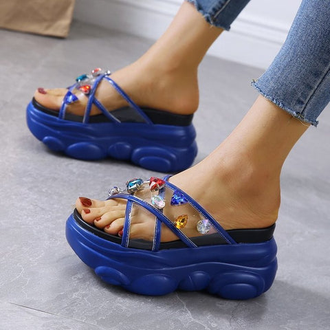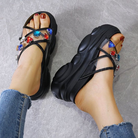 Transparent Cross Big Rhinestones Bear Trifle Bottom Women Sandals
