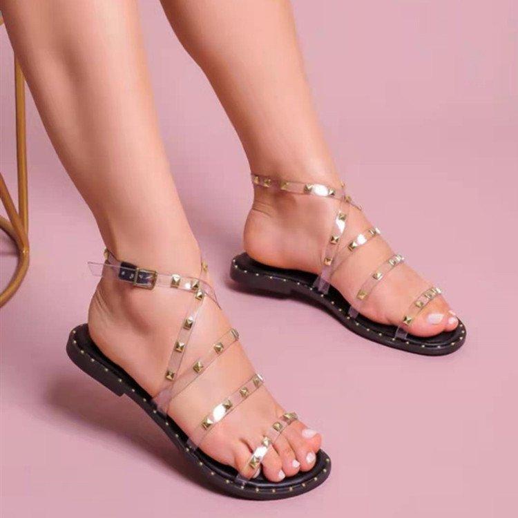 Transparent Rubber Rivet Flat Outer Wear Holiday Roman Beach Women Sandals