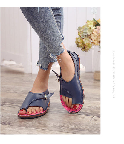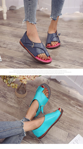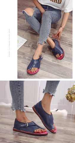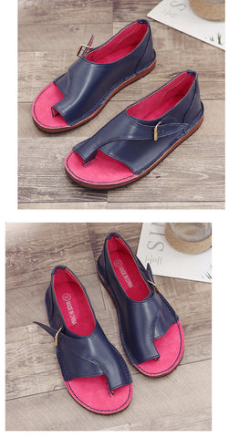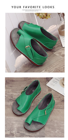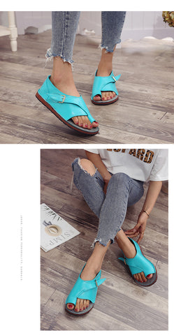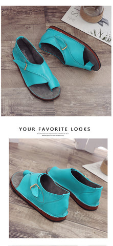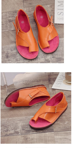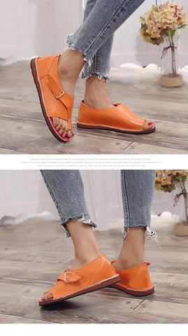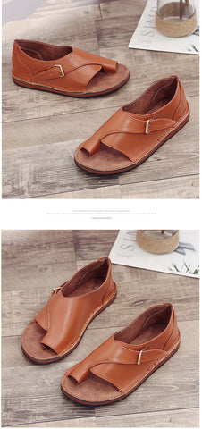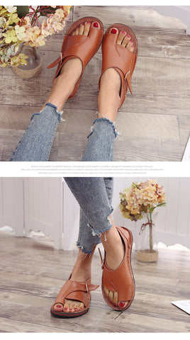 Women Leather Open-toed Sandals Roman Flat Shoes
