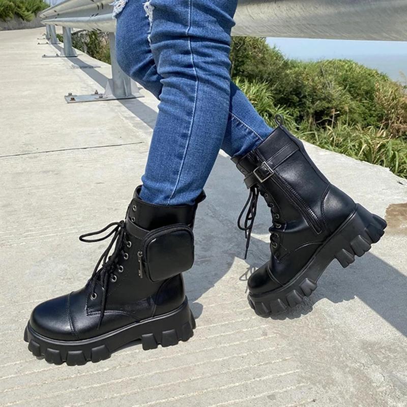Women's Chic Strap Wallet Platform Martin Boots Ankle Boots