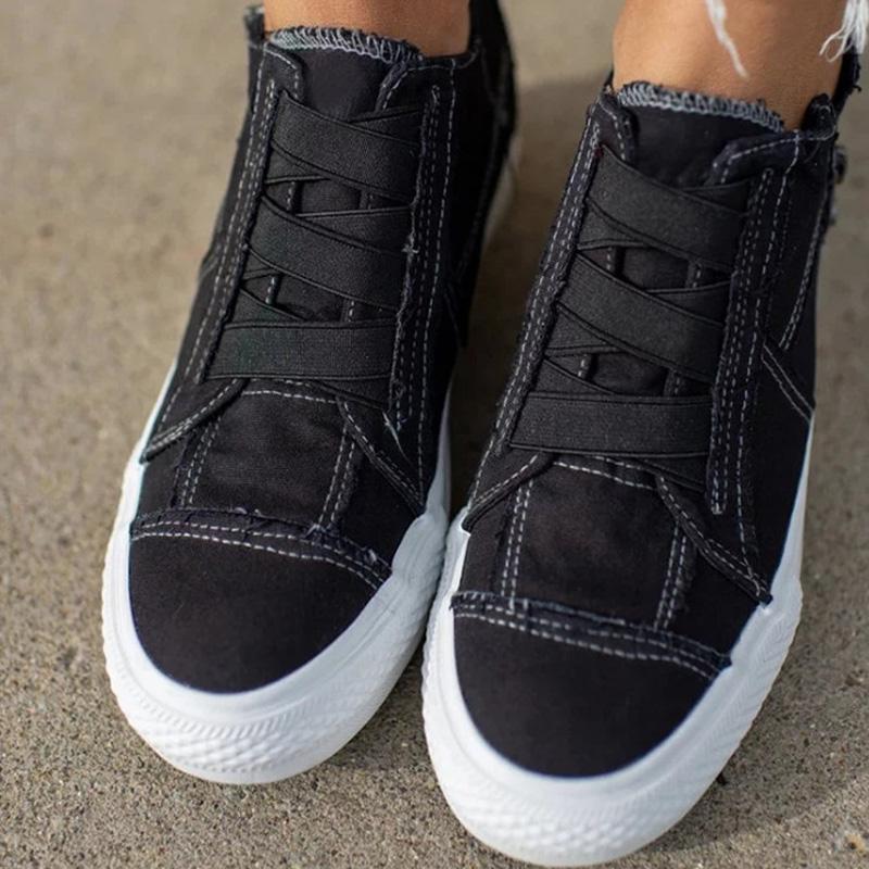Women's Elastic Slid-on Canvas High-top Flat Sneaker