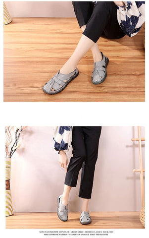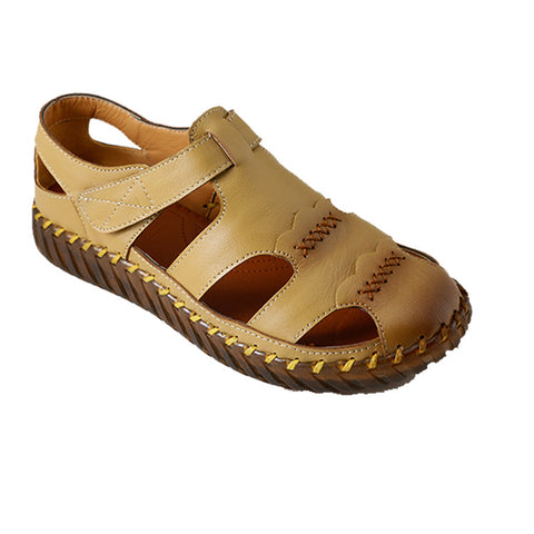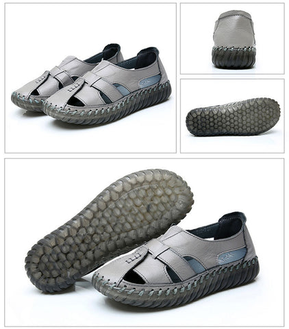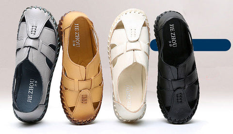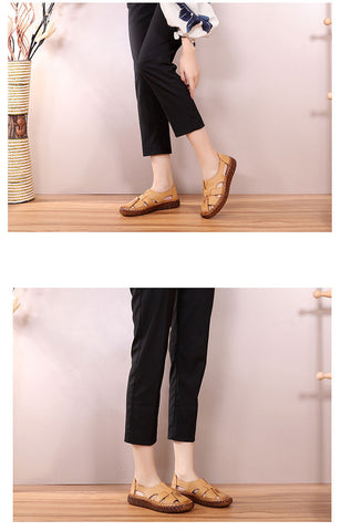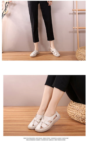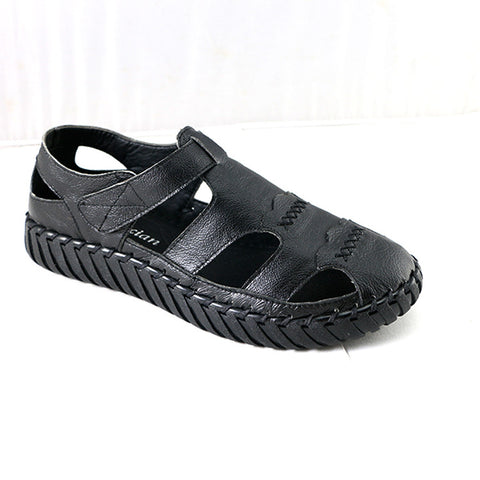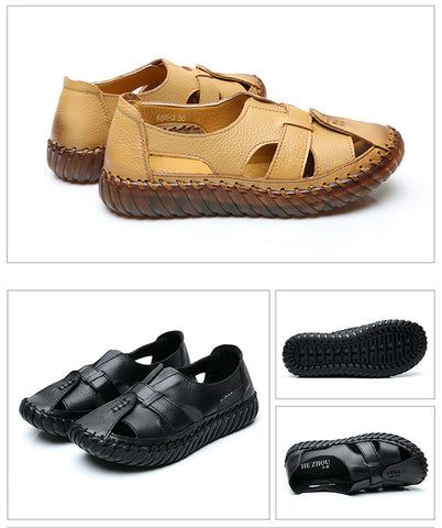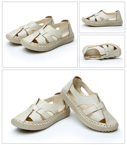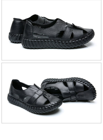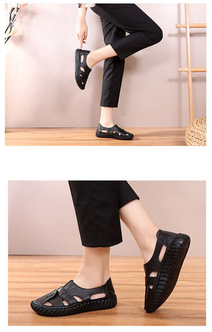Women's Leather Soft Sole Toe Cap Thick-soled Hollow Sandals
