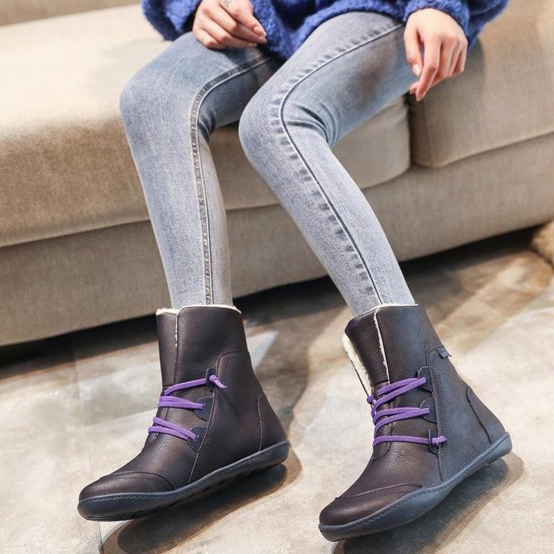 Women's Round Toe Solid Color Keep Warm Ankle Boots