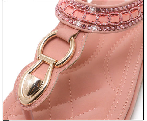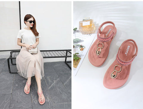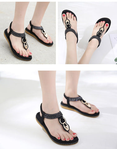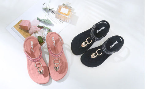 Women's Sandals Beach Seaside Metal Rhinestone Flat Shoes