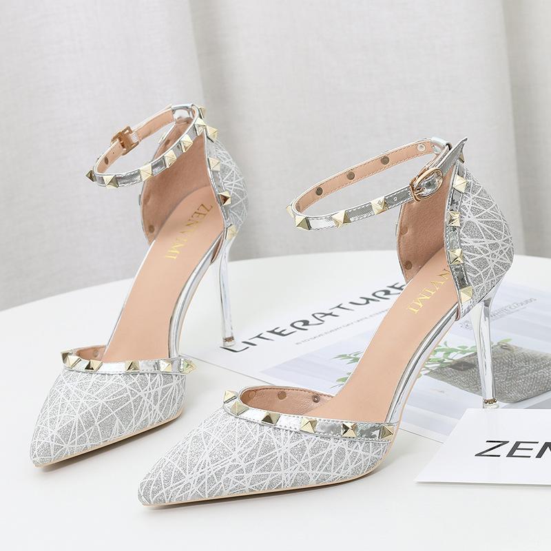 Women's Studded High-heeled Sandals With Pointed Toe Stiletto