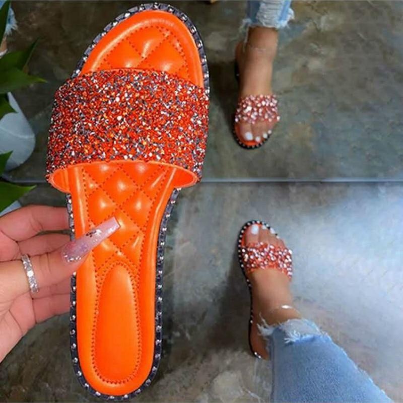 Women's Stylish Crystal Sequins Flat Slippers