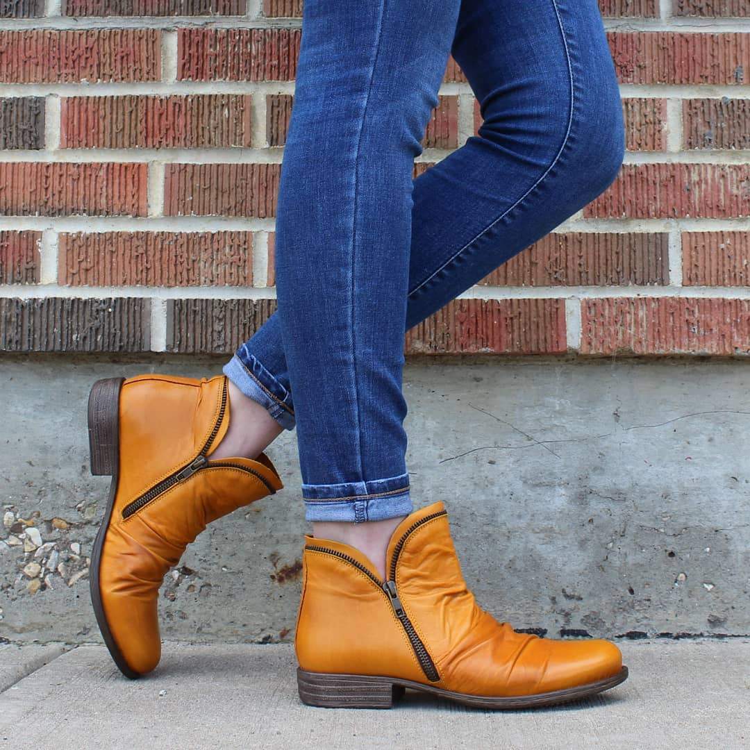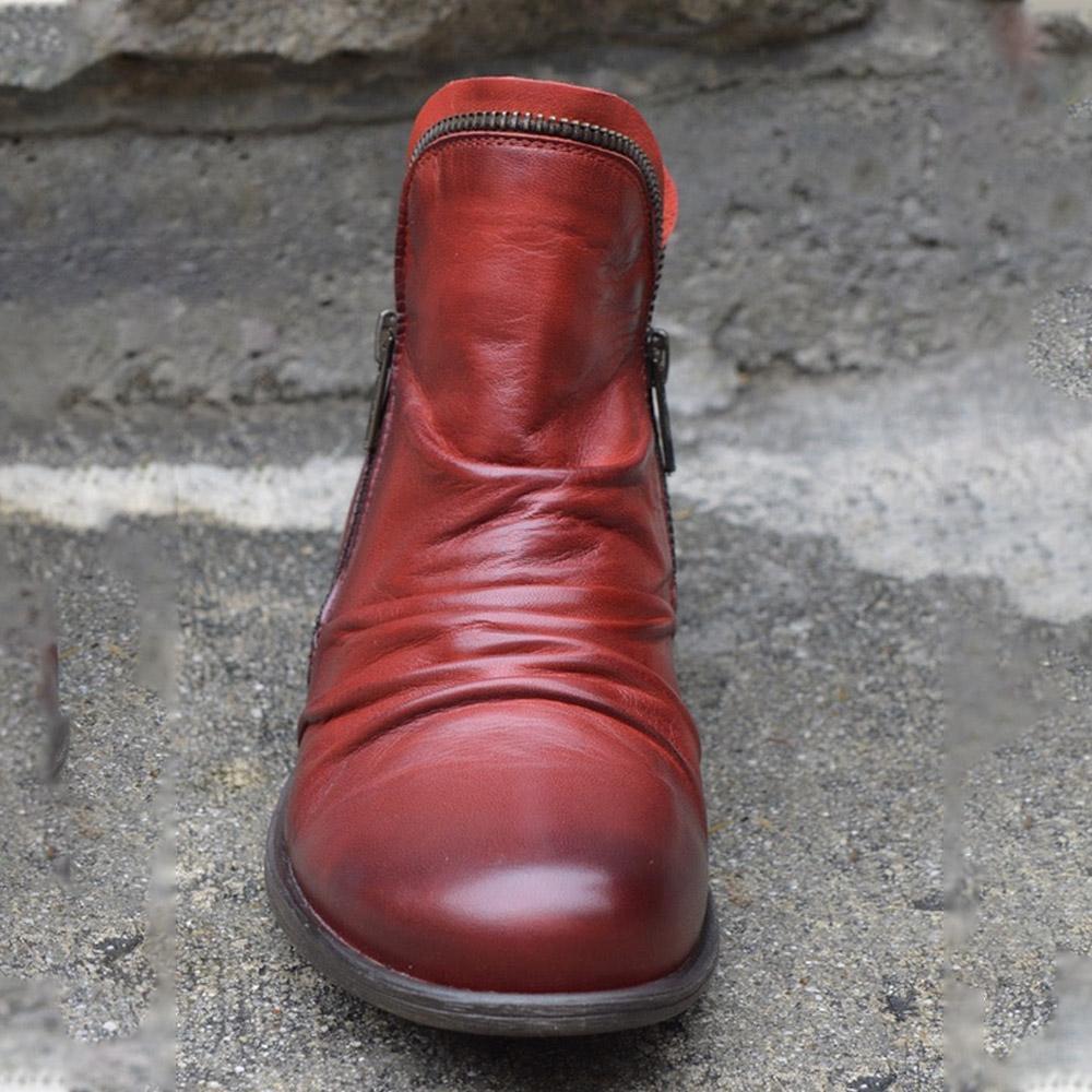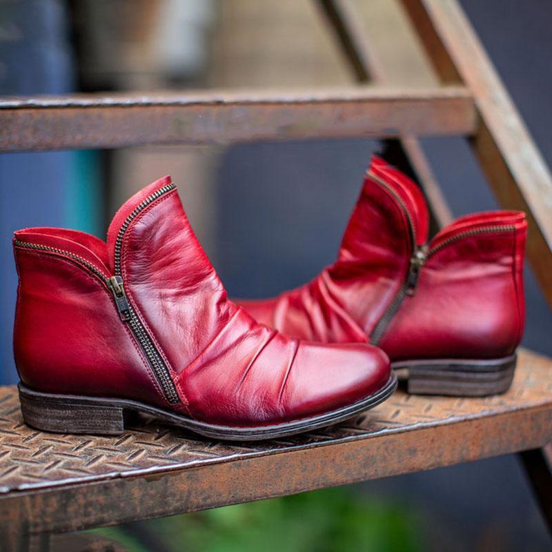 Women's Trendy Vintage Leather Booties Ankle Boots With Zipper