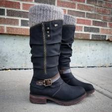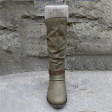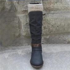 Women's Trendy Vintage Leather Patchwork Chunky Calf Boots