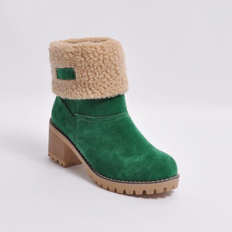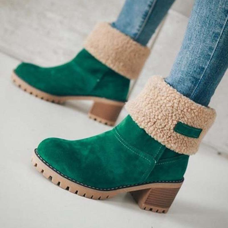 Women's Warm Solid Color Suede Chunky Ankle Snow Boot